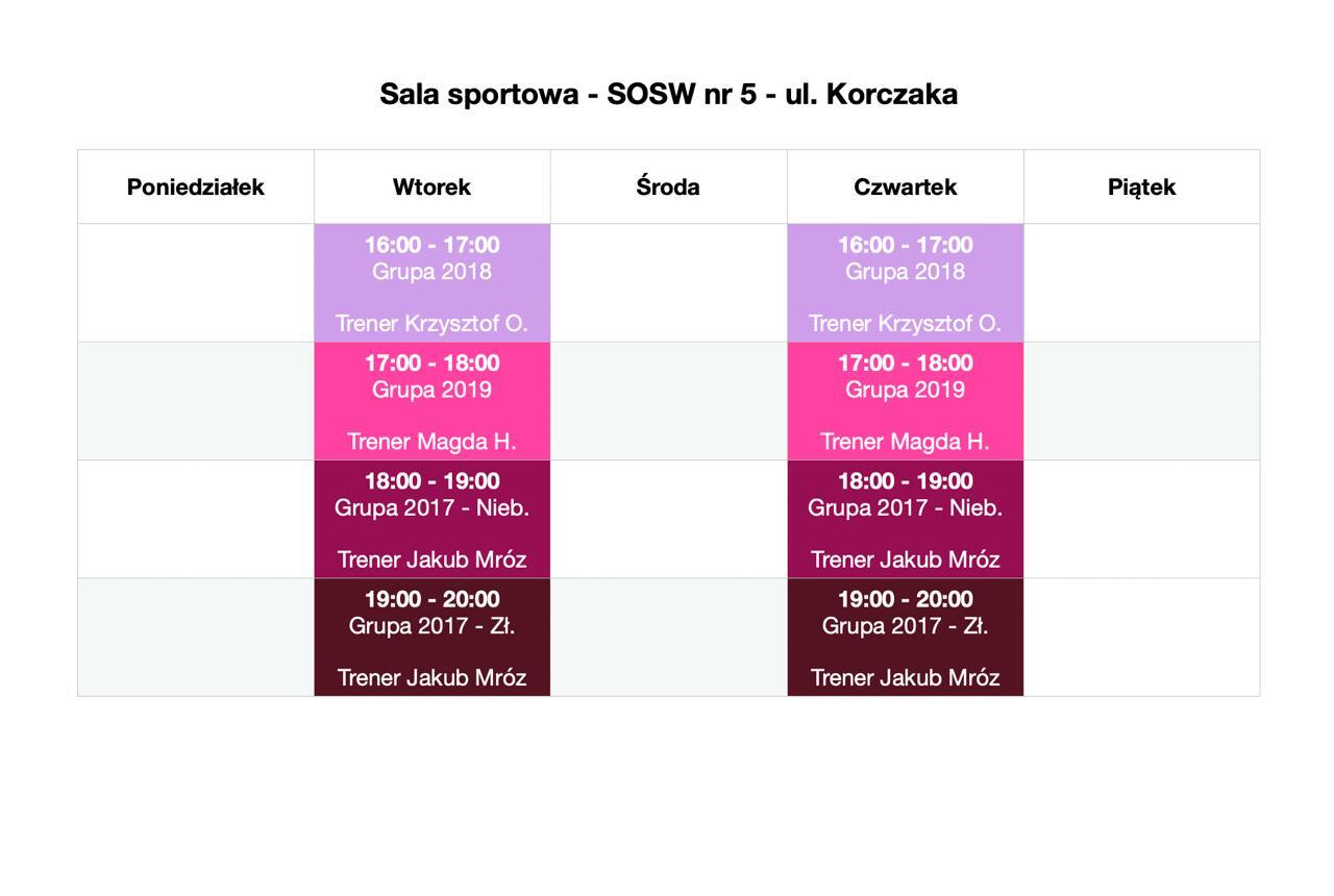 Czwartek 18:00-19:00 - Hala SOSW nr 5