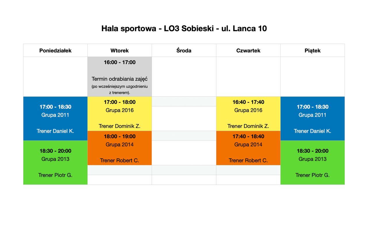 Piątek 18:30-20:00 - Hala LO3 Sobieski